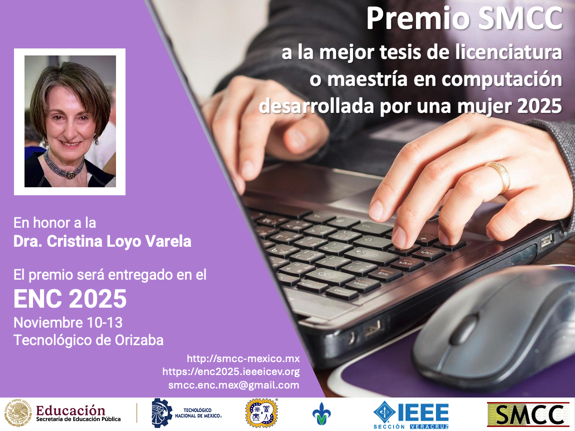 La Sociedad Mexicana de Ciencia de la Computación (SMCC) convoca al Premio SMCC a la Mejor Tesis de Licenciatura o Maestría en Computación 2025 con perspectiva de género en honor a la Dra. Cristina Loyo Varela, bajo las siguientes: